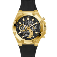 Step out in style everyday with this unique and classy Guess GW0334G2 Third Gear Unisex Watch. The black and gold design is especially chic, with its silicone watch strap that is comfortable to wear. The dial is unlike any other, with the smooth finish of stunning yellow gold and the intricate details of chronograph. Guess watches are a staple in any wardrobe, they can be dressed up or down with ease and are a piece that is sure to turn heads. Fine details in the design really make this piece stand out with an almost mechanical feel.