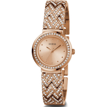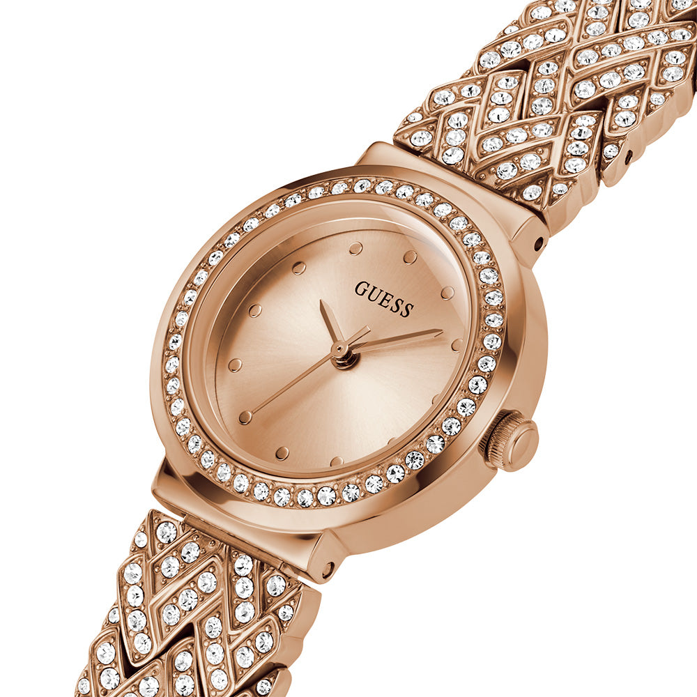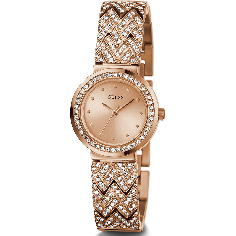 With a delicate 28mm case size, the GW0476L3 exudes a refined presence on the wrist, suitable for both everyday wear and special occasions. The quartz movement ensures accurate timekeeping, offering reliability throughout the day.