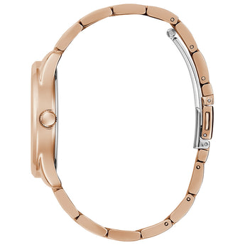 Crafted for comfort and durability, the watch includes a rose gold-tone stainless steel bracelet that complements its refined aesthetic. Water-resistant up to 30 meters, it offers practicality for everyday activities and withstands occasional exposure to water.