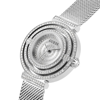 Completing its allure is a self-adjustable silver mesh bracelet, adding a touch of modern flair and comfort. The unique crown design adds a distinctive element, elevating this timepiece to not just an accessory, but a statement of style and refinement. Perfect for those who daydream of a sophisticated, yet effortlessly chic look, the Guess GW0550L1 Dream watch is a testament to timeless beauty and impeccable design.