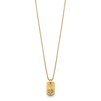 Guess Mens Jewellery Antique Gold Plated Engraved Tag Pendant On 71.12cm Box Chain