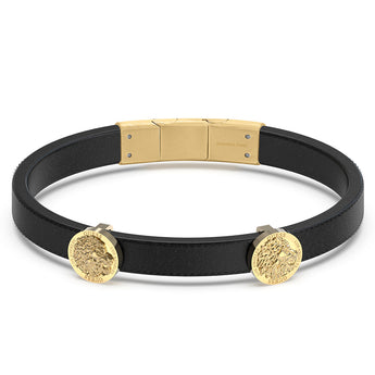 Guess Mens Jewellery Gold Plated Stainless Steel 10mm Double Side Coin Black Bracelet