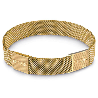 Guess Mens Jewellery Gold Plated Stainless Steel 12mm Mesh Squared Logo Bracelet