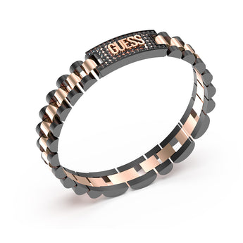 Guess Mens Jewellery Stainless Steel Rose Gold Plated 10mm Pave Tag Empire Bracelet