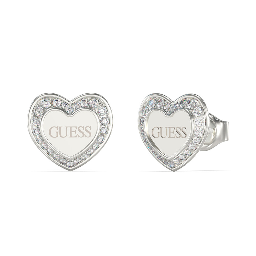 Guess Rhodium Plated Stainless Steel 12mm Crystal Heart Stud Earrings