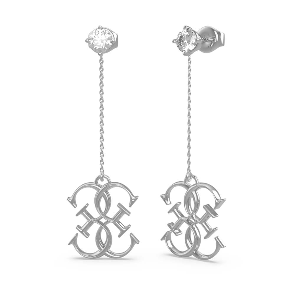 Guess Rhodium Plated Stainless Steel 56mm Chain & 4G Logo Drop Earrings
