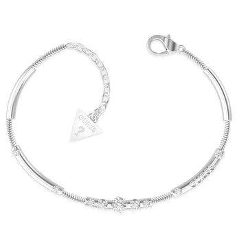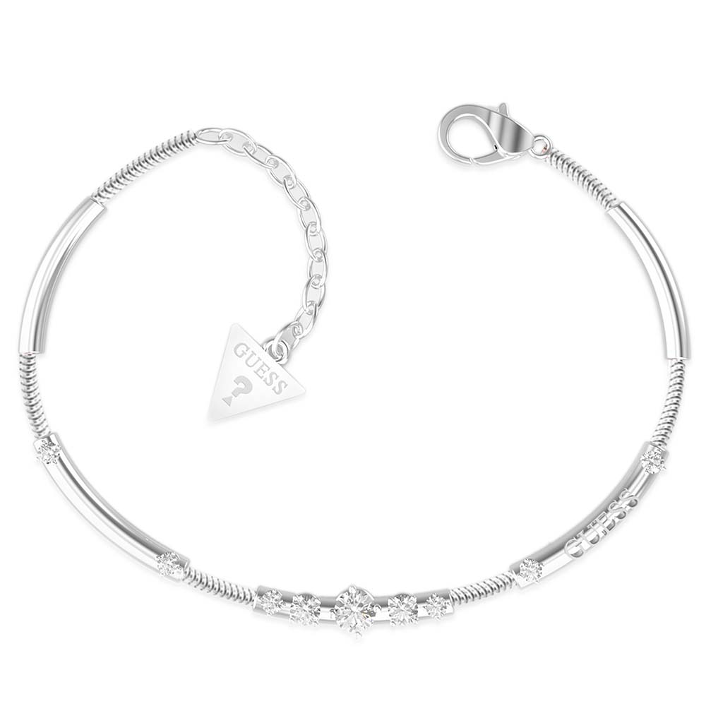 Guess Rhodium Plated Stainless Steel Chain & White CZ Bracelet