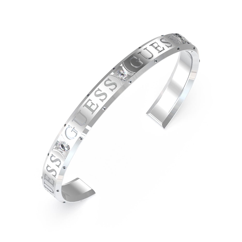 Guess Rhodium Plated Stainless Steel Logo Round Bangle