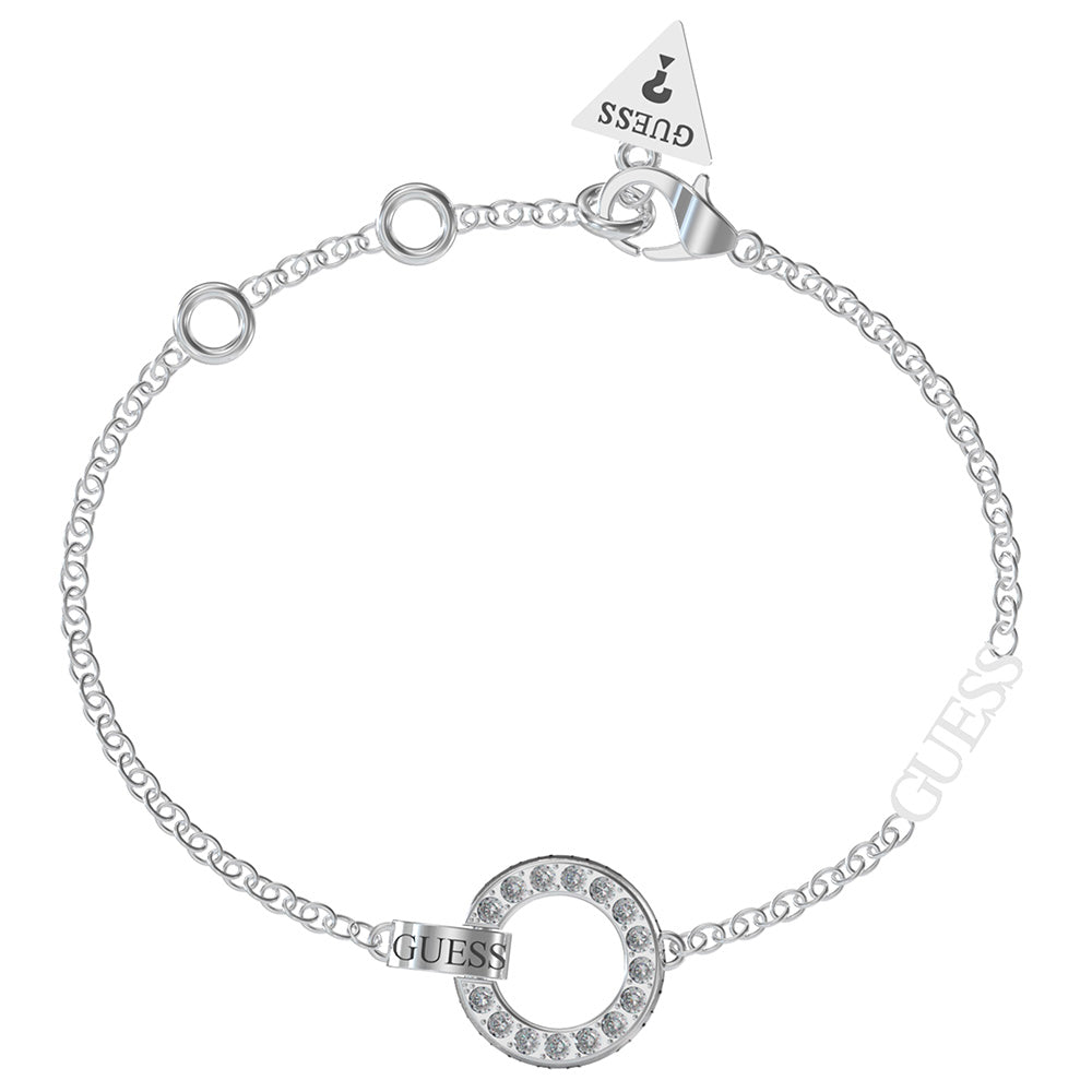 Guess Rhodium Plated Stainless Steel Pave Circle Bracelet