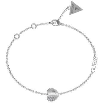 Guess Rhodium Plated Stainless Steel Plain & Pave Heart Charm Bracelet