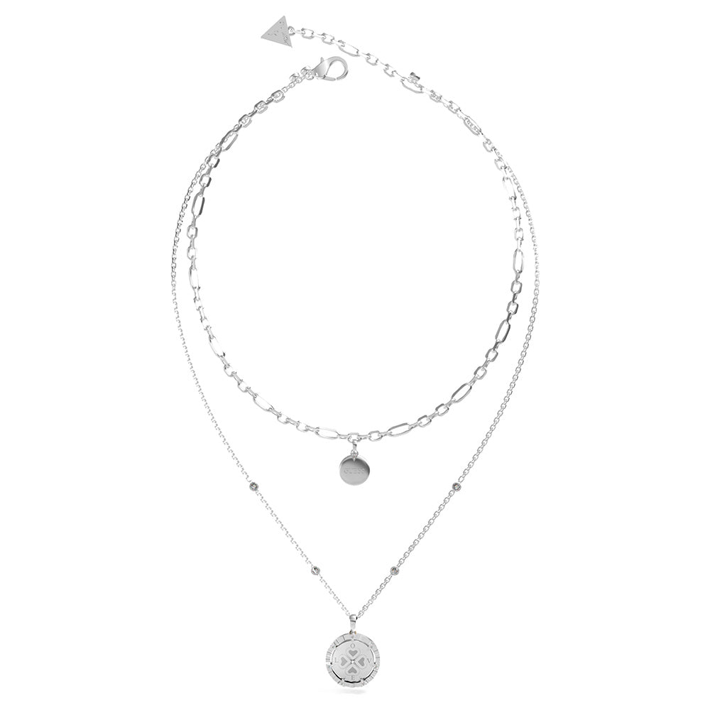 Guess Rhodium Plated Stainless Steel Two Layers Love 16-18"Chain