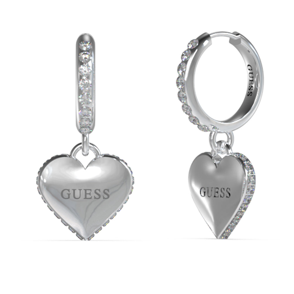 Guess Stainless Steel 30mm Heart Charm Huggies Earrings