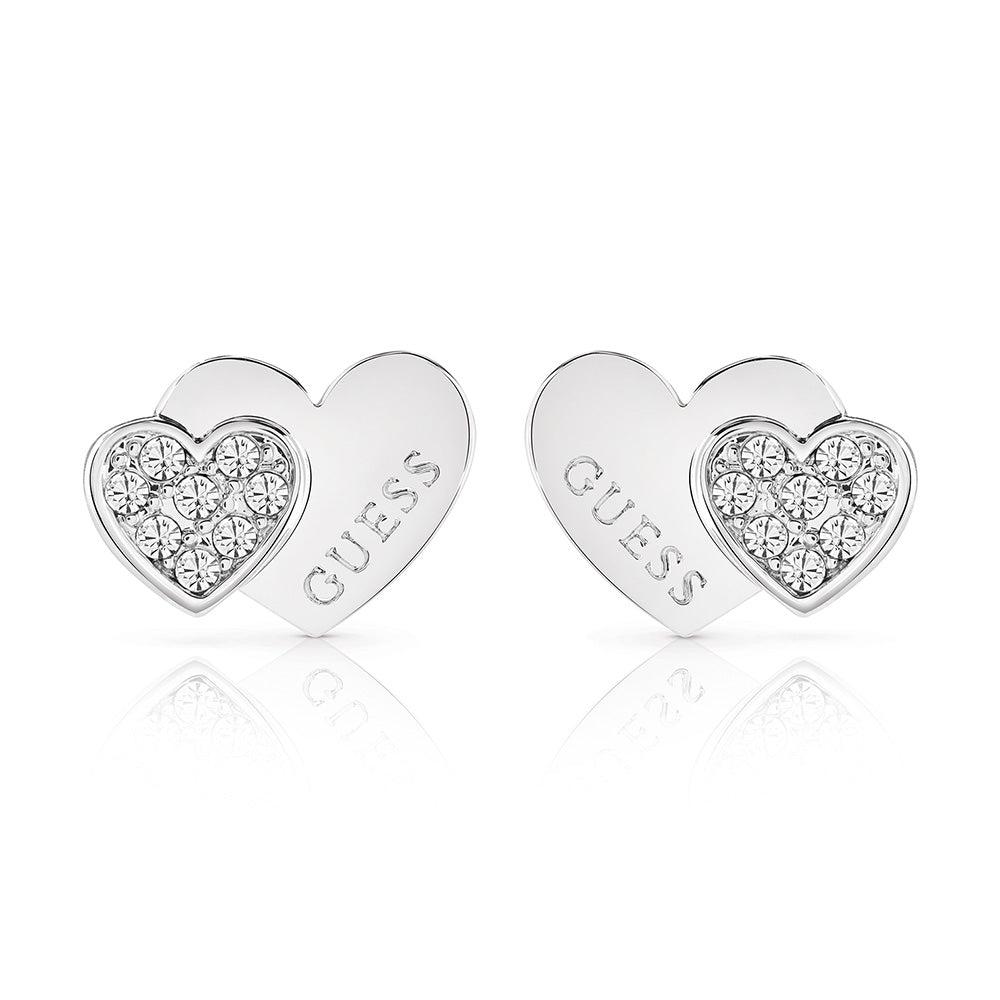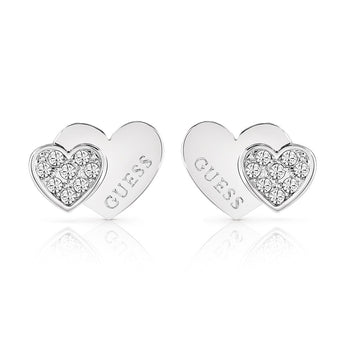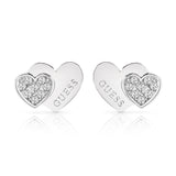 Guess Stainless Steel Double Heart Pave Stud Earrings