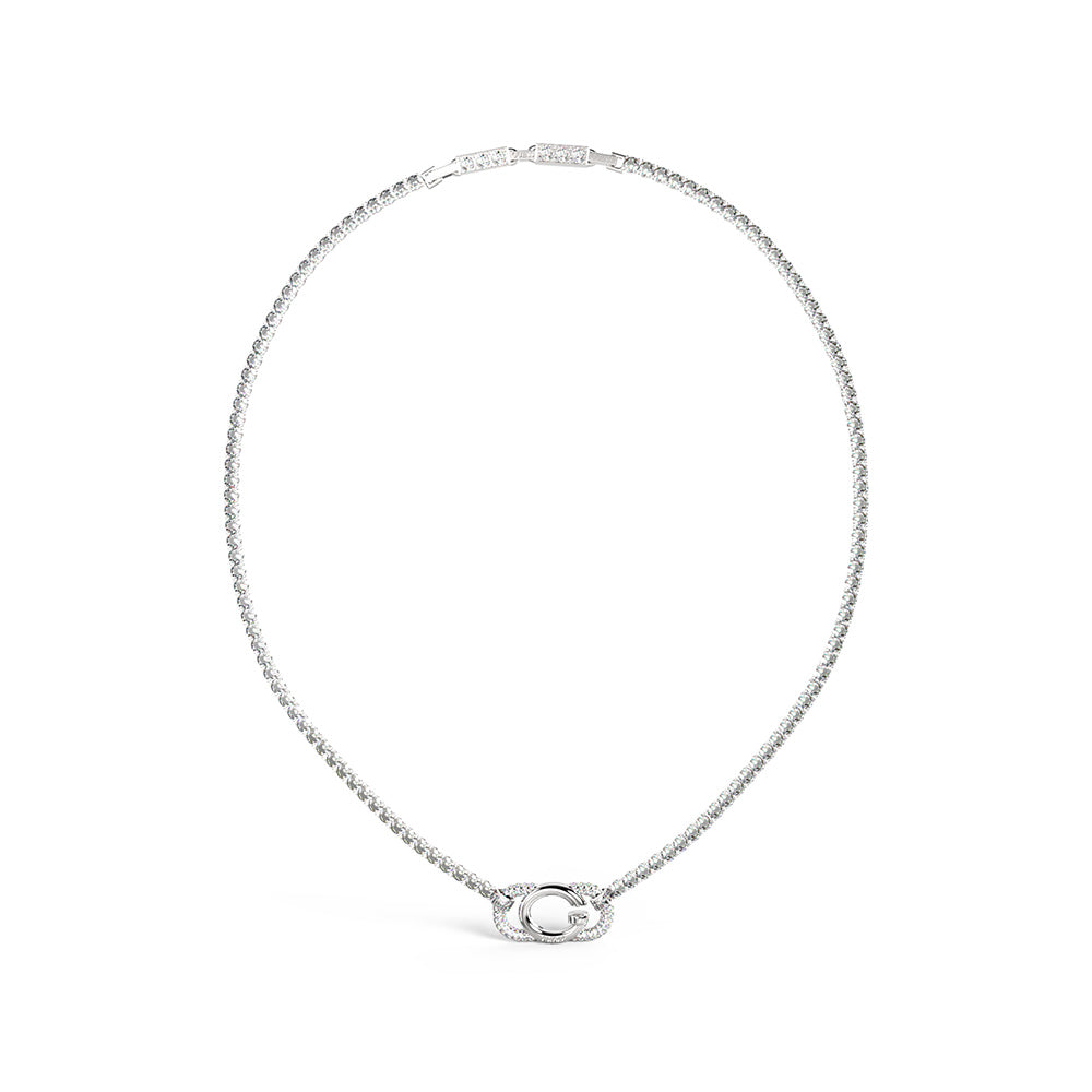 Guess Stainless Steel G Logo And Crystals Tennis 16-18" Chain