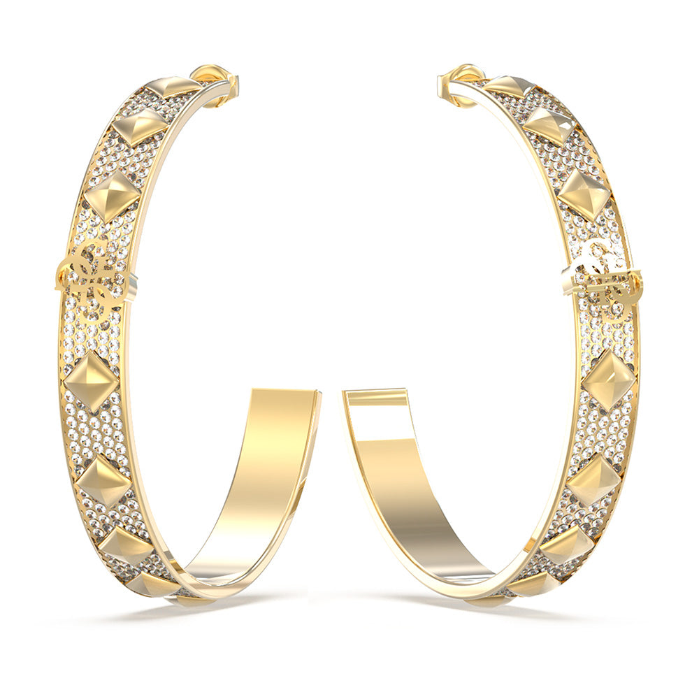 Guess Stainless Steel Gold Plated 60mm 4G Pave Hoop Earrings