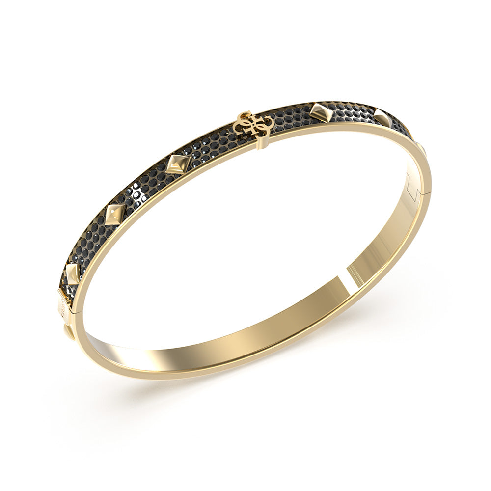 Guess Stainless Steel Gold Plated 6mm Black Pave Stud Bangle