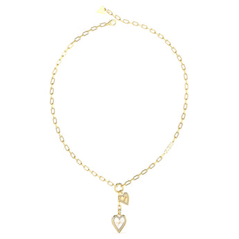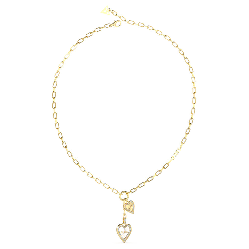 Guess Stainless Steel Gold Plated Double Heart Pendant On Paperlink 16-18" Chain