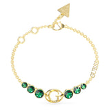 Guess Stainless Steel Gold Plated G Logo Emerald Stone Bracelet