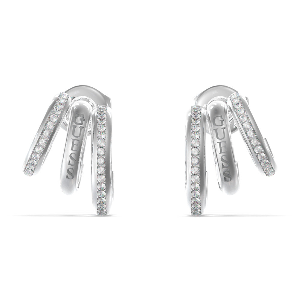 Guess Stainless Steel Rhodium Plated 12mm Triple Mini Hoop Earrings