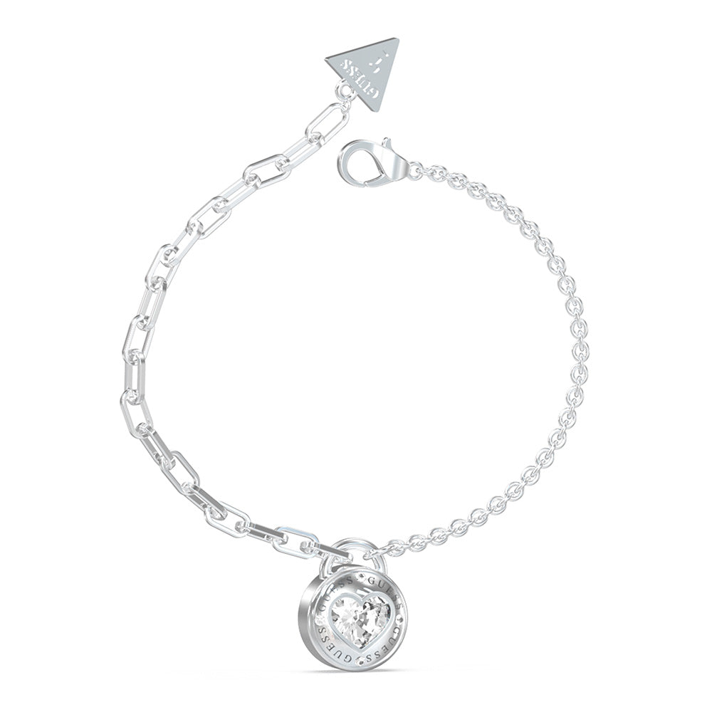 Guess Stainless Steel Rhodium Plated Half Round Chain Heart Bracelet