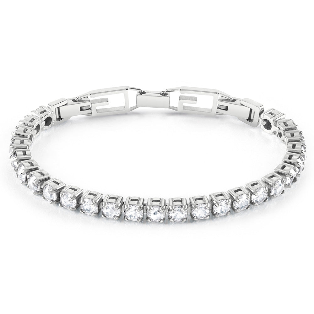 Guess Stainless Steel Tennis Clear CZ G Buckle Bracelet