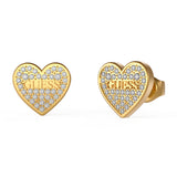 Guess Yellow Gold Plated 11mm Pave Logo Heart Stud Earrings