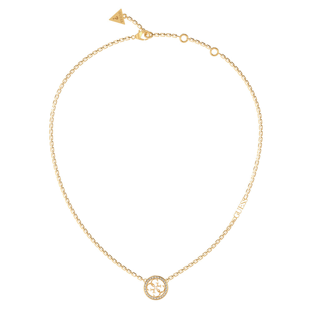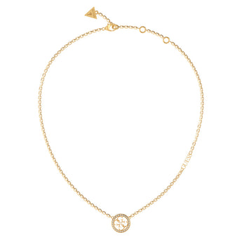 Guess Yellow Gold Plated 16-18" 4G & CZ Coin Pendant On Chain