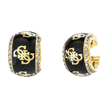 Guess Yellow Gold Plated 4G Black Bead Mini 15mm Hoop Earrings