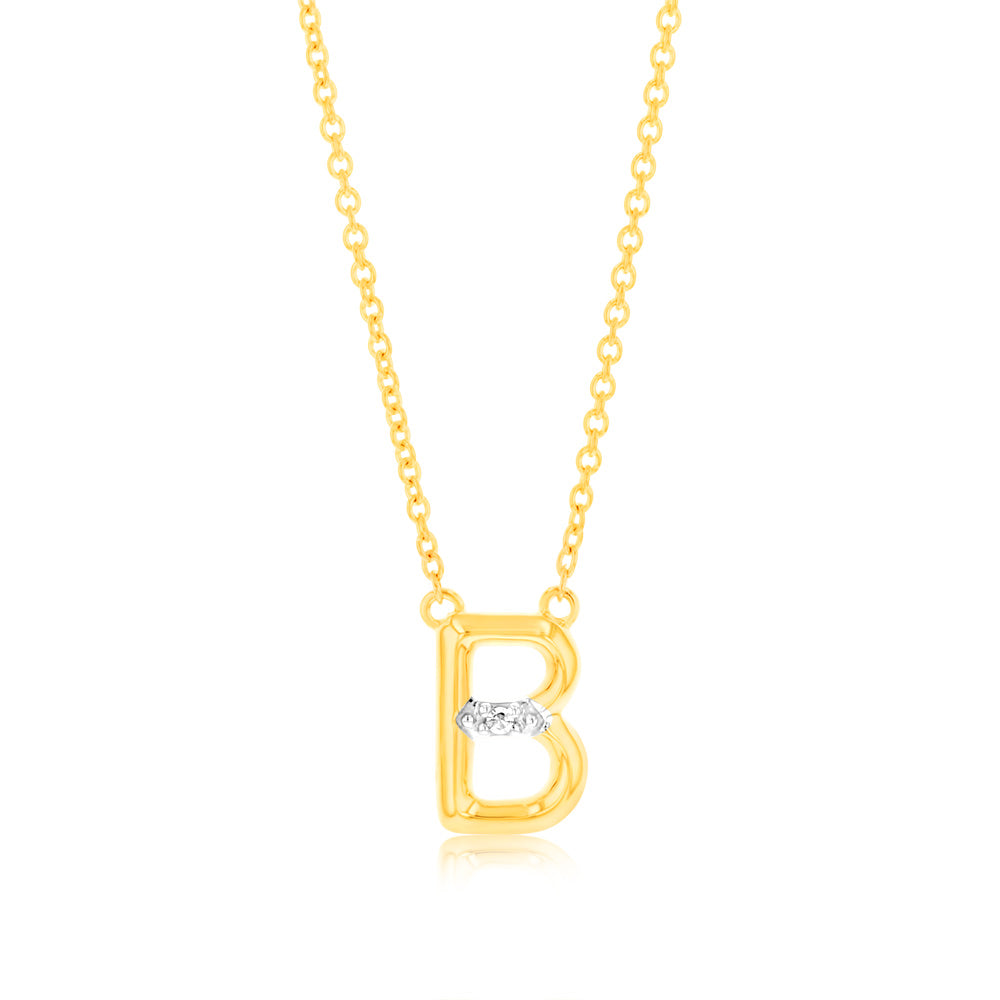 Initial B Diamond Pendant in 9ct Yellow Gold