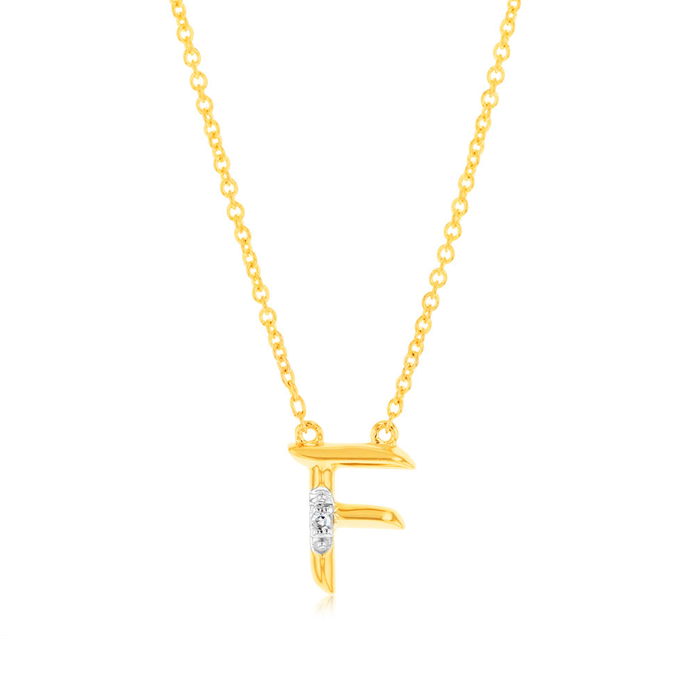 Initial F Diamond Pendant in 9ct Yellow Gold