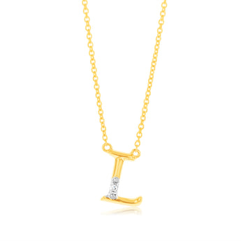 Initial L Diamond Pendant in 9ct Yellow Gold