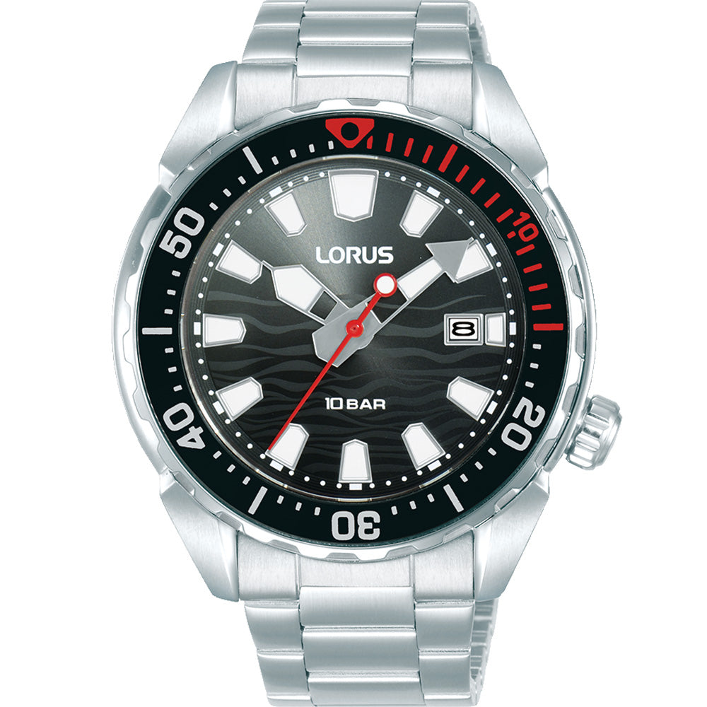 Powered by a dependable quartz movement, this watch has a 41mm case size and is protected by durable mineral crystal. With a pull-out crown and 100 meters of water resistance, it’s built to handle both everyday wear and active lifestyles with style.