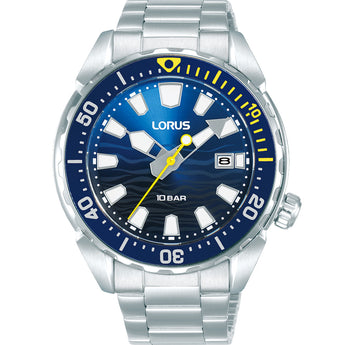 Powered by a precise quartz movement, this watch has a 41mm case size and is protected by durable mineral crystal. With a convenient pull-out crown and water resistance up to 100 meters, it's perfect for everyday wear with a sporty edge.