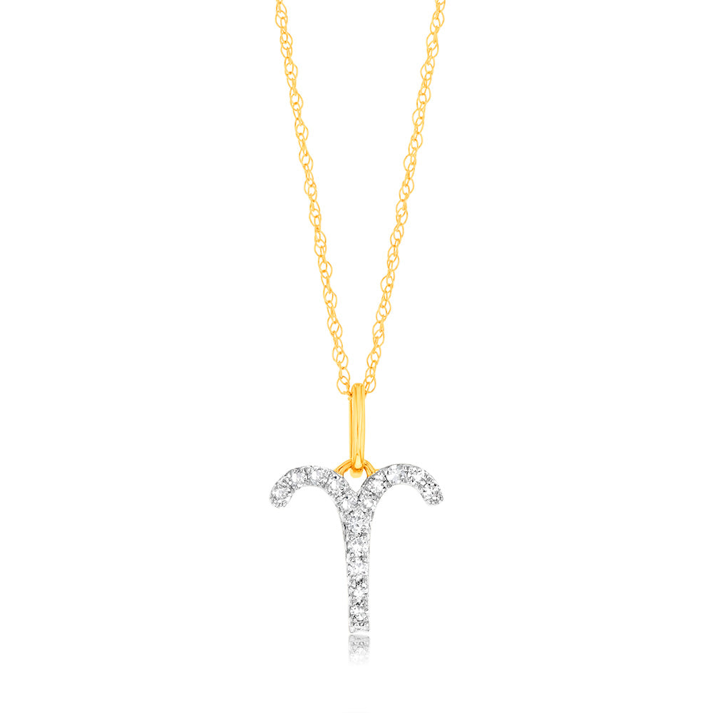 Luminesce Lab Diamond 9ct Yellow Gold Aries 1/10 Carat Diamond Pendant With Chain