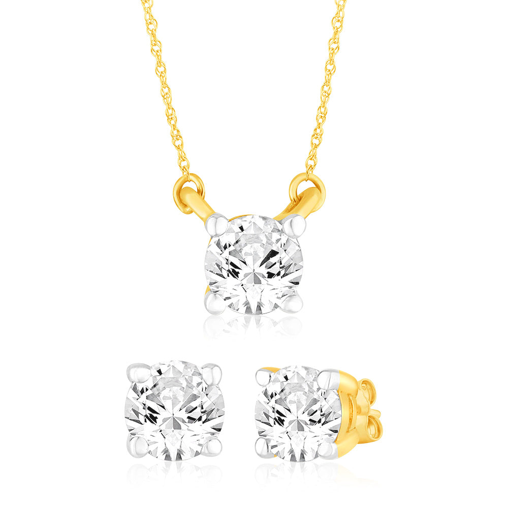 Luminesce Lab Grown 0.30Ct Earring & 0.30Ct Diamond Pendant Set With Adjustable Chain in 9ct Yellow Gold