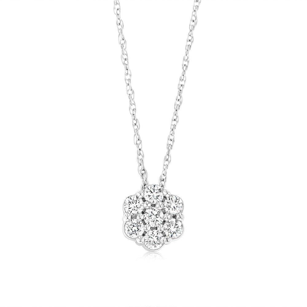 Luminesce Lab Grown 1/3 Carat Flower shaped Diamond Pendant in Sterling Silver Chain Included