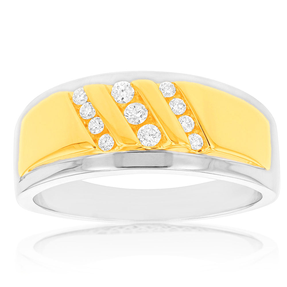 Luminesce Lab Grown 1/4 Carat Diamond Gents Ring in 9ct Yellow and White Gold