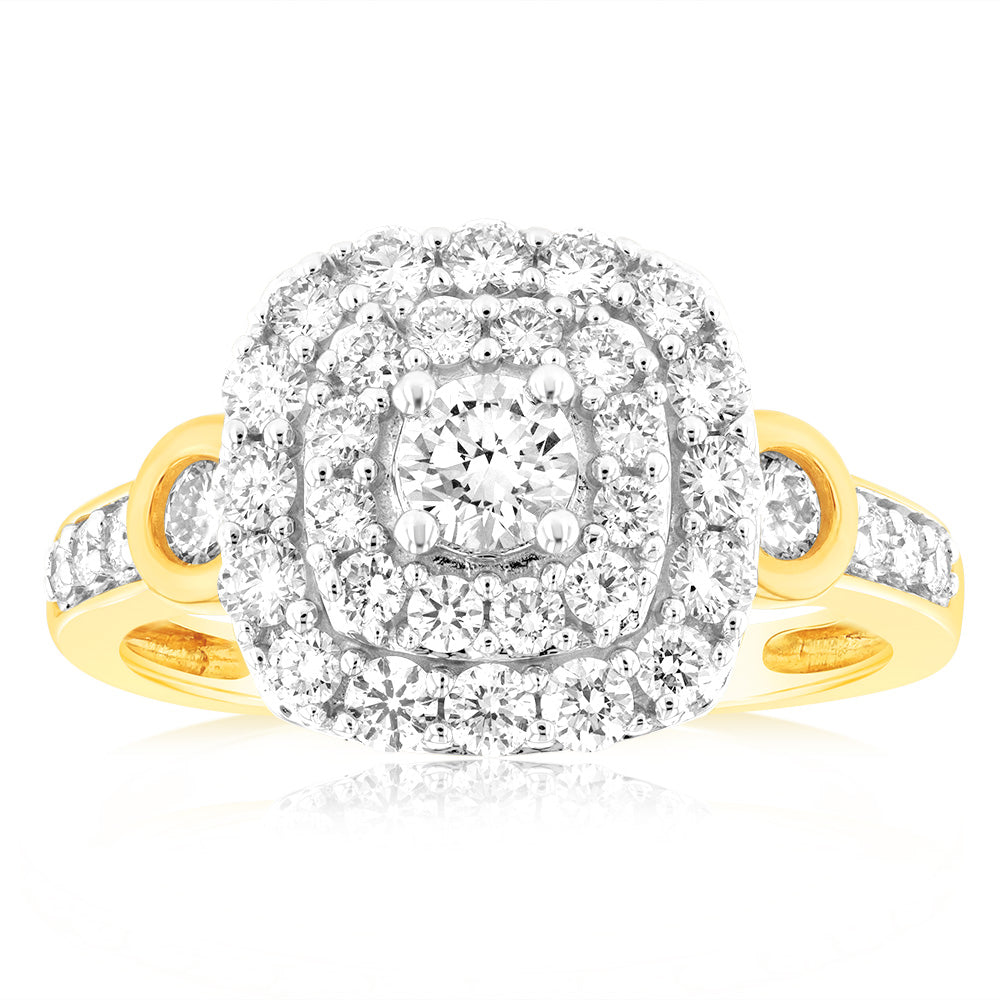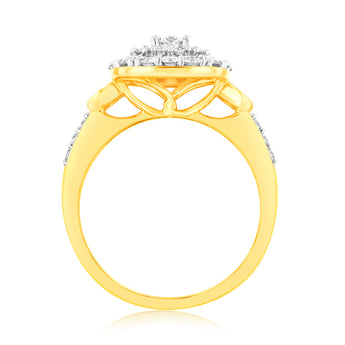 Luminesce Lab Grown 1 Carat Diamond Halo Ring in 9ct Yellow Gold