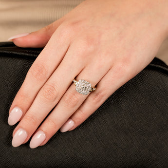 This 9ct Yellow Gold 1 Carat Luminesce Lab Grown Diamond Halo Engagement Ring offers a glamour like no other, boasting a brilliant Luminesce lab grown diamond that weaves through the warm 9 carat yellow gold band. With an absolute sparkle, this dress ring will have you looking extra fancy on your special night out.