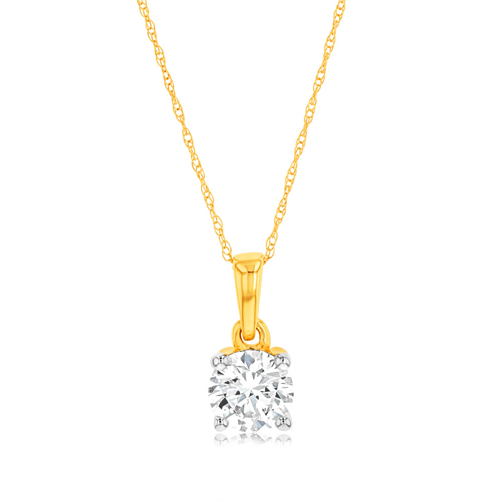 Luminesce Lab Grown 1 Carat Diamond Solitaire Pendant on 9ct Yellow Gold Adjustable Chain