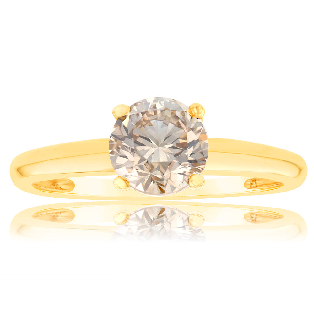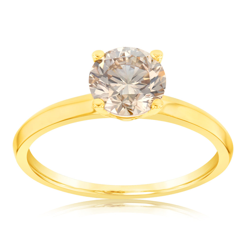 Luminesce Lab Grown 1 Carat Light Champagne Solitaire Diamond Ring in14ct Yellow Gold