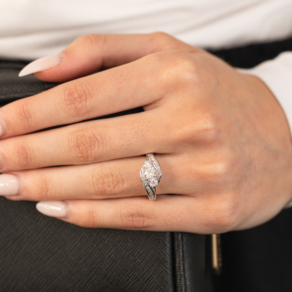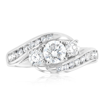Luminesce Lab Grown 1 Carat Solitaire Diamond Ring with Channel Set Side Diamonds in 9ct White Gold