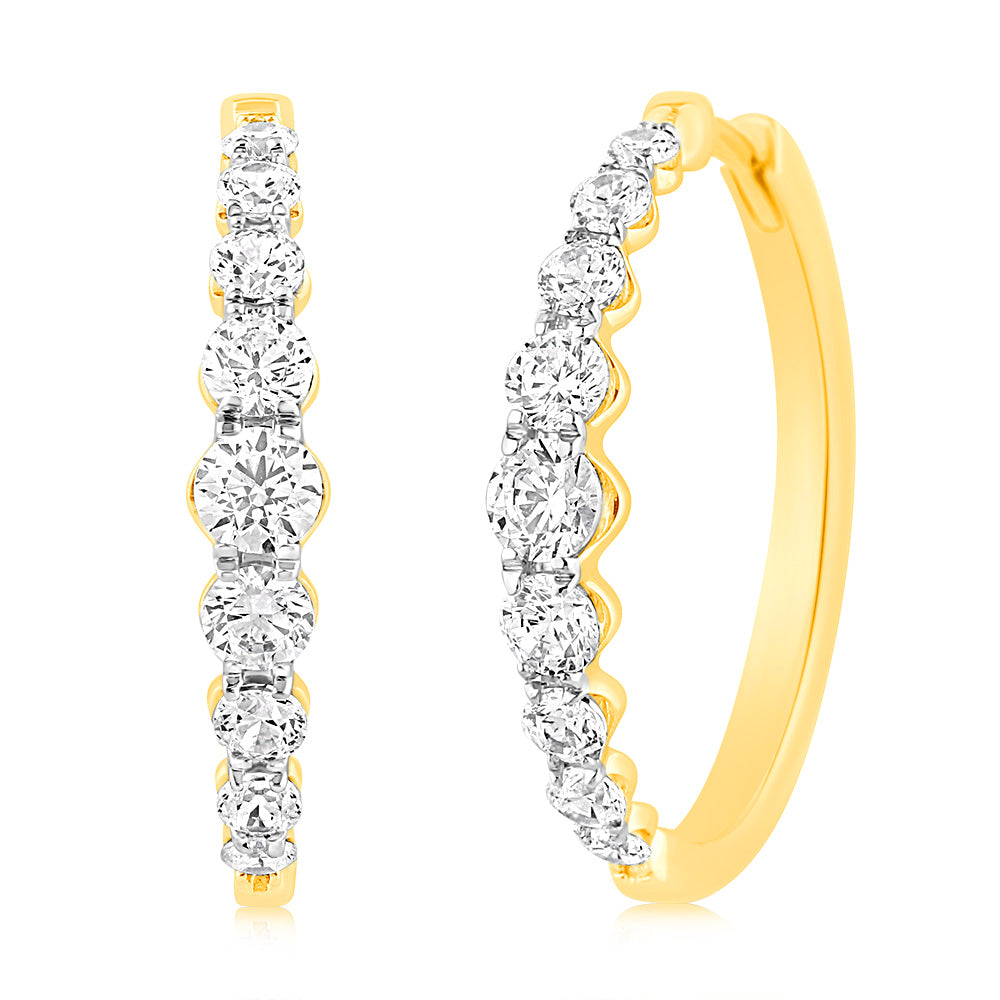 Luminesce Lab Grown 10ct Yellow Gold Hoop Earrings in 1 Carat Diamond