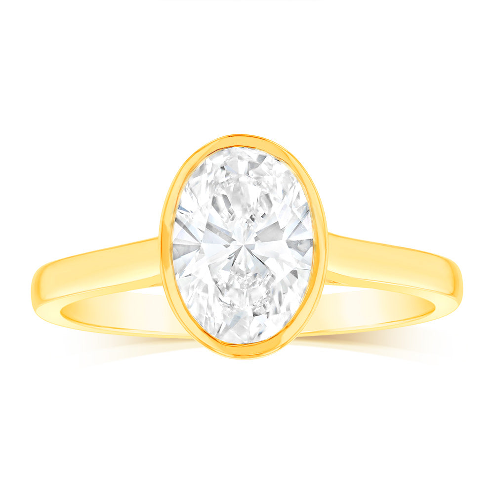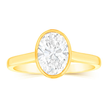 Luminesce Lab Grown 14ct Yellow Gold 1.5Carat Oval Cut Diamond Ring in Bezel Set