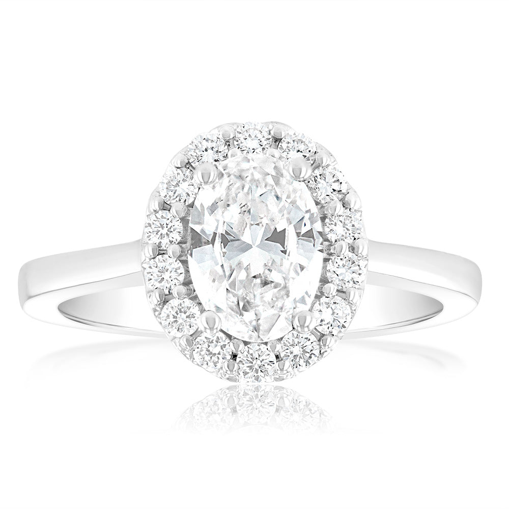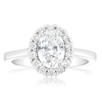 Luminesce Lab Grown 18ct White Gold 1.3 Carat Diamond Oval Halo Ring