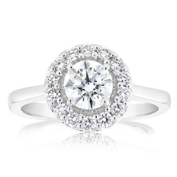 Luminesce Lab Grown 18ct White Gold 1 Carat Diamond Brilliant Halo Ring