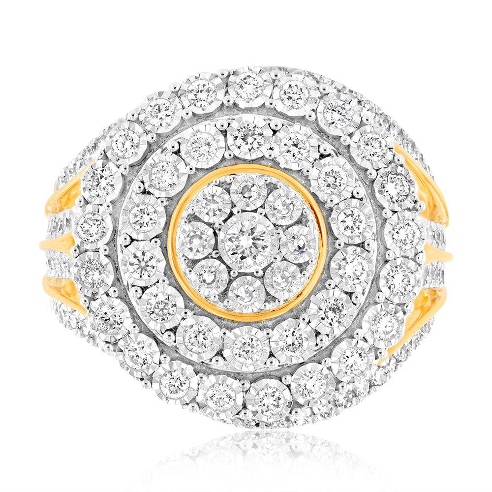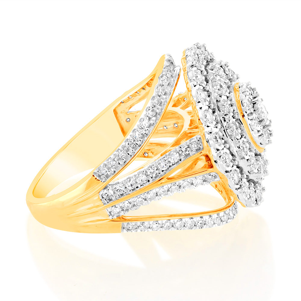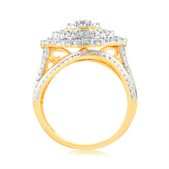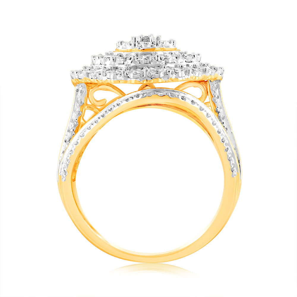 Luminesce Lab Grown 1Carat Cluster Shaped Diamond Ring in 9ct Yellow Gold