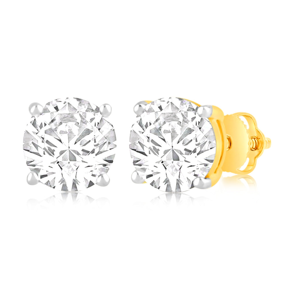 Luminesce Lab Grown 3 Carat Solitaire Diamond Stud Earrings in 14ct Yellow Gold