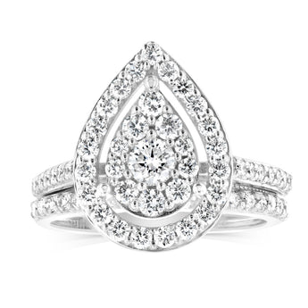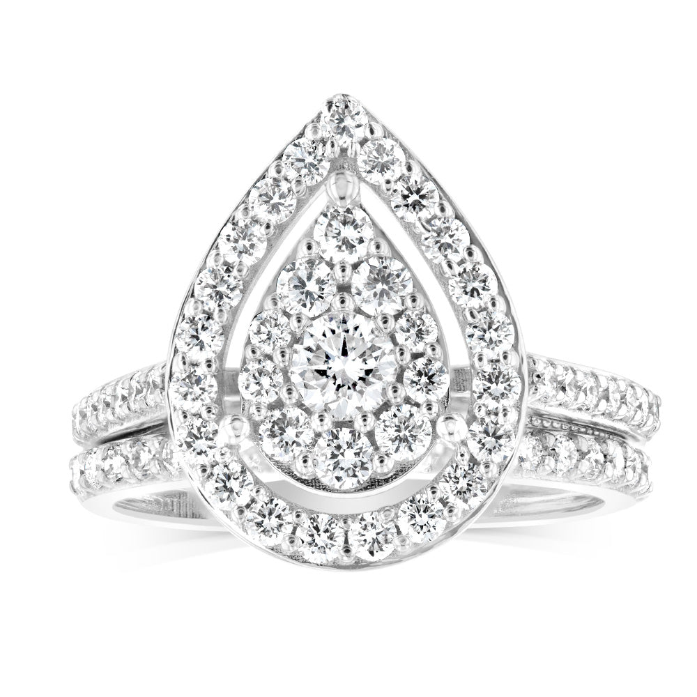 Luminesce Lab Grown 9ct White Gold 1.2 Carat Pear Shaped Bridal Set