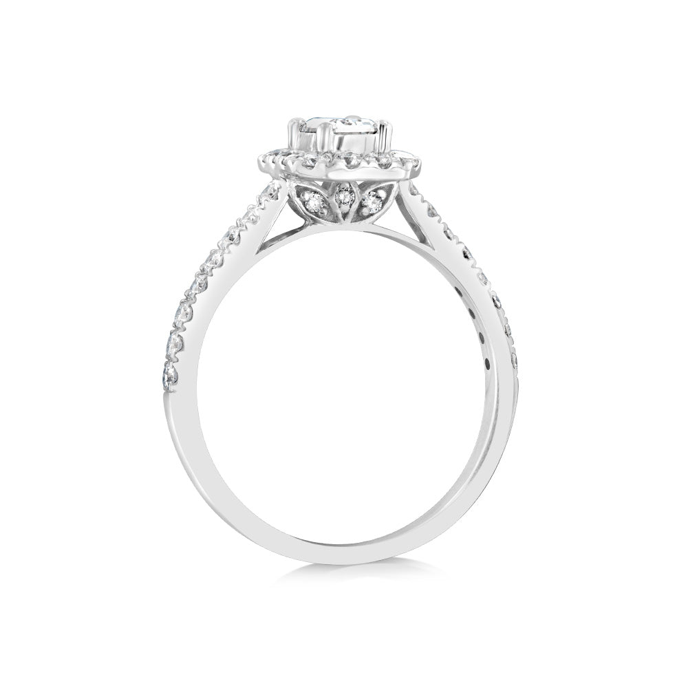 Luminesce Lab Grown 9ct White Gold 1 Carat Diamond Halo Solitaire Ring Emerald Centre Diamond